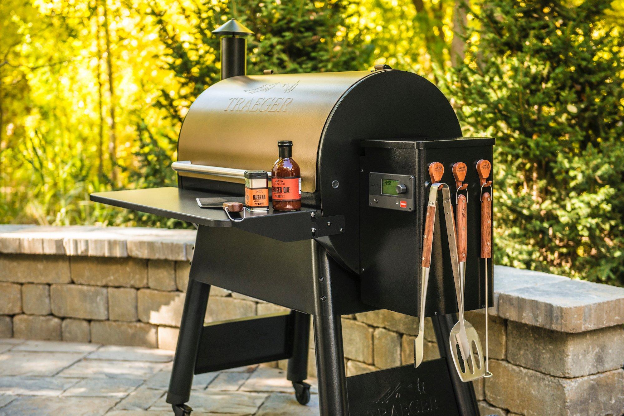 Of cooking space and it s 6 in 1 versatility allows you to grill smoke bake roast braise and bbq with wood fired flavor every time. Find a great collection of traeger bbqs grills at costco. Of grilling area wider legs for added stability and a digital elite controller. Shop traeger grills the original wood fired grill.