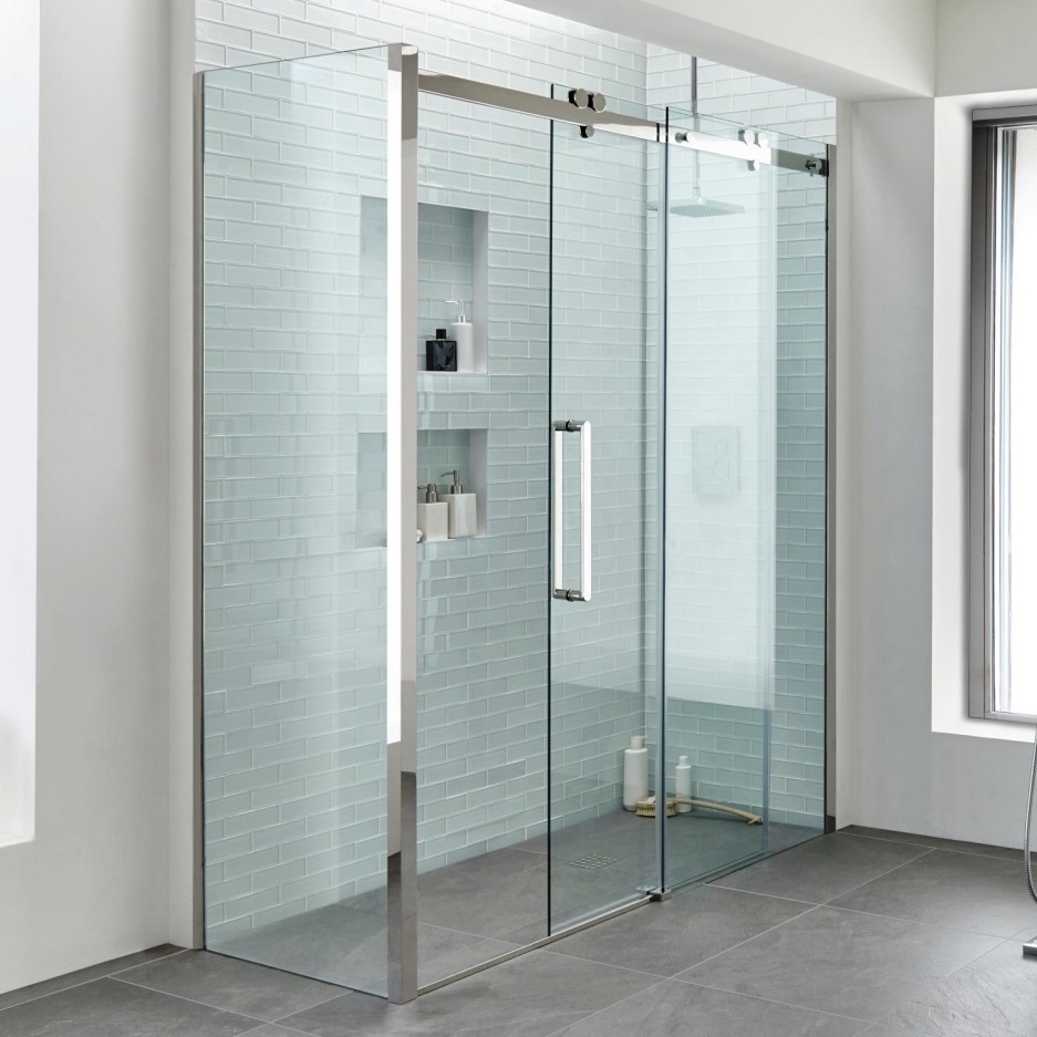 Product information trinity premium 10mm left hand 1200 frameless sliding door summary. This 1700 x 900 trinity premium sliding shower enclosure is manufactured from toughened 10mm glass with an optional easy clean upgrade making this a luxurious addition to any modern day suite. We re taking orders and delivering as normal and doing everything we can to protect our customers and staff. 10mm easy clean safety glass enclosure strong durable profiles are mirror chrome finish to compliment the frameless design suitable for use with without a shower tray.